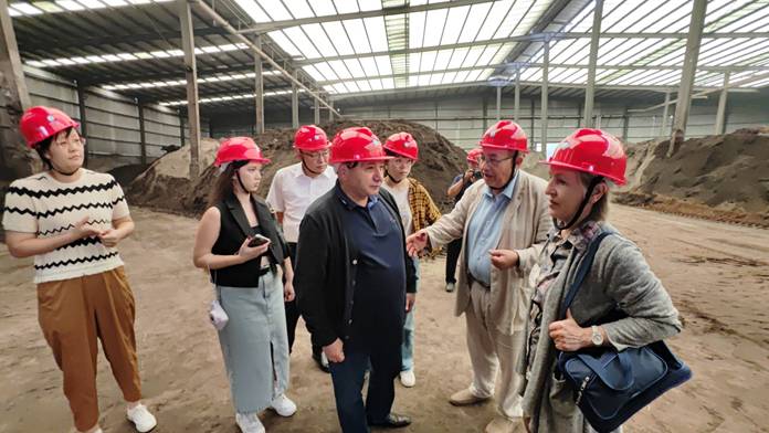 当俄罗斯院士团队踏入山东百花生物集团的那一刻,便被厂区内整洁的环境和现代化的生产设施所吸引。在山东百花生物集团总经理刘恩城的陪同下,院士团队开始了对菌肥厂区的深入参观。这里,先进的自动化生产线正有条不紊地运转着。院士团队仔细观察着生产流程,不时与工作人员交流,询问关于生产工艺、质量控制等方面的问题。集团领导详细地介绍了产品的生产过程,从原材料的筛选到菌种的培育,从生物肥造粒再到最后的成品包装,每一个环节都严格遵循高标准、高质量的要求。